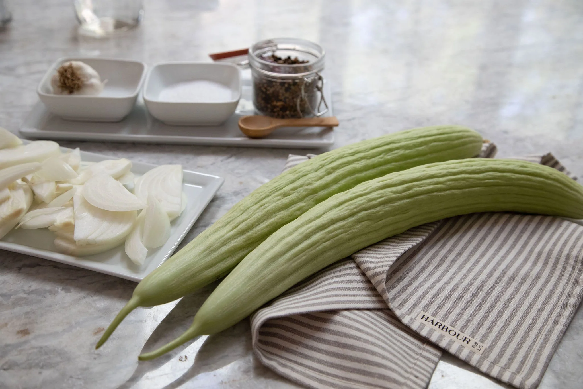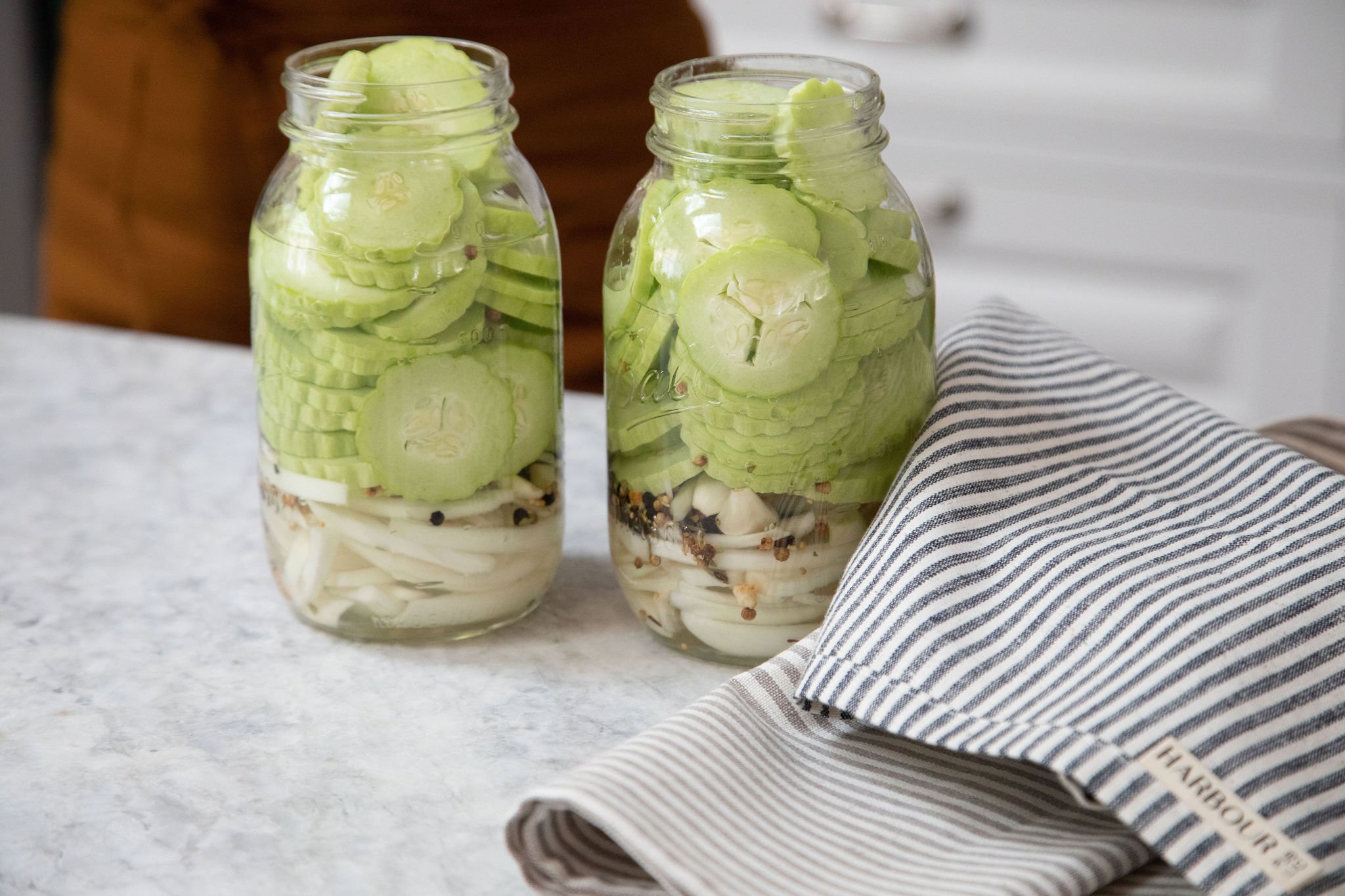 Quick Pickles, also known as “refrigerator Pickles”, is a short term storage process that doesn’t require any canning equipment. A variety of vegetables can be prepared in this way but we prefer a classic cucumber pickle. Most recipes call for Kirby cucumbers but we find that there is a lot of flexibility with that. We used heirloom Armenian yard long cucumbers, lovingly grown from seed in Gabby’s garden.